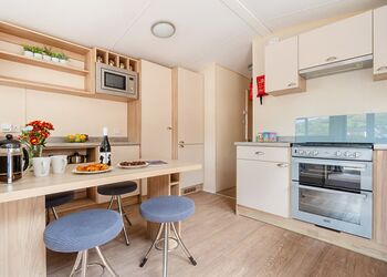 Modern and contemporary caravan with an open plan lounge, kitchen and dining area, outdoor verandah with hot tub, perfect for holidays and special occasions. Sleeps six.Images are representative and may not be the specific accommodation assigned on booking.