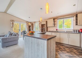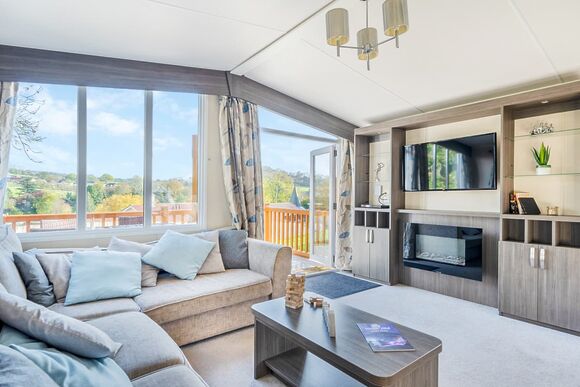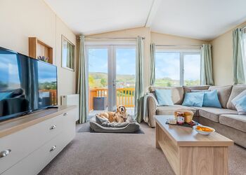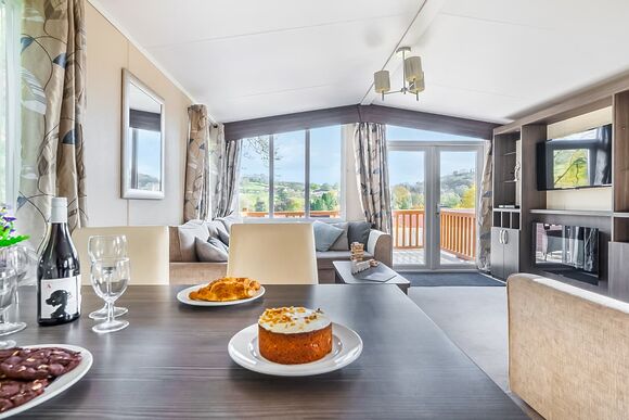 Super spacious, stylish lodge with twice the living space of our standard lodges. Includes an en suite master bedroom and a hot tub with the best views of Wookey Hole. Sleeps six.