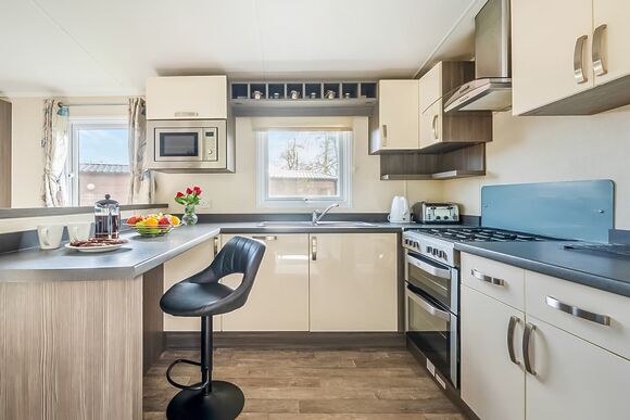 Classic, family-friendly caravan. All the amenities you’ll need for a comfortable getaway for up to six people. open-plan living area and outdoor hot tub.Images are representative and may not be the specific accommodation assigned on booking.
