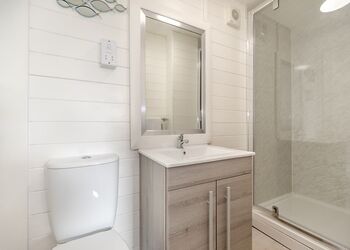 Unique upside down design with living accommodation upstairs, taking advantage of the fantastic river views. Bedrooms and bathroom downstairs. One double and two twin. Bath with overhead shower or standalone shower. No pets.Images are representative and may not be the specific accommodation assigned on booking.