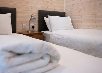 The Glade Exclusive 2 Spa is a luxurious woodland lodge situated within the prestigious ‘Glade’ development, perfect for couples and small families. The master bedroom features a king-size bed, a flat-screen TV, a dressing area and an ensuite bathroom with a freestanding bath, integrated wall TV, and a separate shower. The second bedroom includes twin beds, a flat-screen TV, a dressing area, and an ensuite with a large shower.The stylish living space includes a high-quality kitchen with an island, washing machine, coffee machine, wine cooler, fridge freezer, dishwasher, and washing machine. The spacious living area has a dining table, comfy sofas, and a large flat-screen TV with wireless audio connectivity, Chromecast for streaming, and a PlayStation 5. French doors open to private decking with a feature brise soleil, quality outdoor dining furniture, sun loungers, and an indulgent outdoor hot tub. No Pets. Early check-in at 2 pm.Images are representative and may not be the specific accommodation assigned on booking.