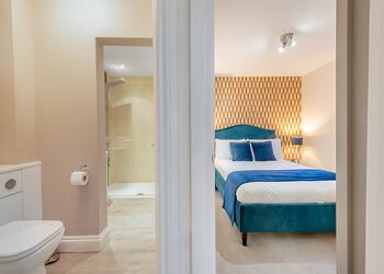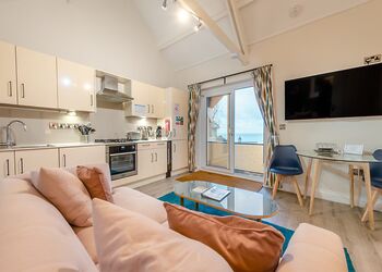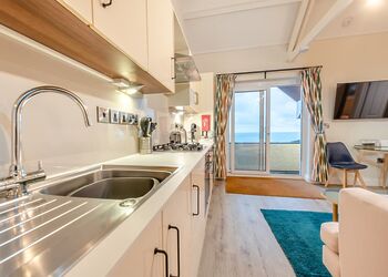 These self-catering first floor apartments are perfect for couples or solo travellers looking for a little luxury on their holiday. They are spacious and newly refurbished to a high standard, with a fully fitted kitchen; including a fridge with freezer compartment, dishwasher and wine cooler. The apartments have central heating and there are TVs in the living area and bedroom and a rainfall shower in the bathroom. These apartments have some of the best views of the coast on the whole park. Towels are included and no pets allowed. Each apartment has a private deck area with a hot tub and table and chairs.Images are representative and may not be the specific accommodation assigned on booking.