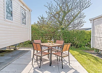 Luxurious and contemporary caravan. One double and two twin. Family shower. Stylish and modern open plan lounge/kitchen/dining area with large Flatscreen TV, Playstation 3 games console on request (deposit required). Doors leading to decking with garden furniture, and luxury outdoor hot tub. This caravan has had a change of location on the holiday park. No pets.