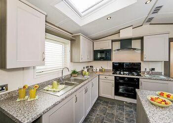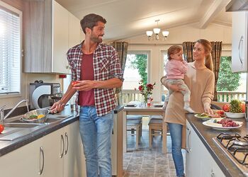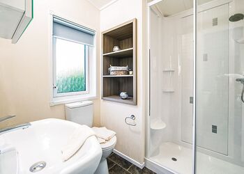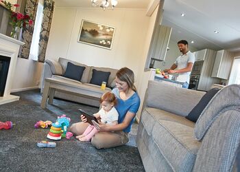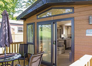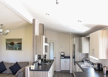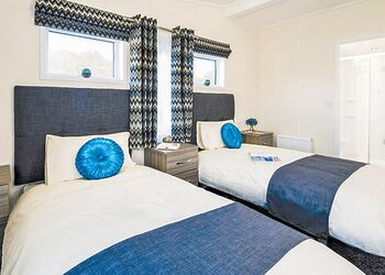 Spacious and contemporary lodge style holiday home. One double with en suite shower and one twin. Shower. Open plan lounge/kitchen/dining area with doors leading to verandah with garden furniture and outdoor hot tub.Images are representative and may not be the specific accommodation assigned on booking.
