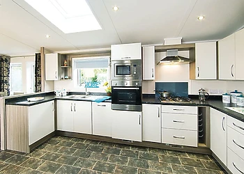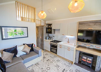 New in 2017. Deluxe lodge style holiday home. One double with en suite shower and two twin. Family bathroom with overhead shower. Open plan lounge/kitchen and dining area with doors leading to decking with garden furniture and outdoor hot tub.Images are representative and may not be the specific accommodation assigned on booking.