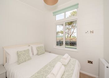 Luxurious 5/6 berth lodges, have a master bedroom with an en suite shower and toilet, 2 twin bedded rooms, family bathroom with shower, fully fitted kitchen with integrated washer/dryer and dishwasher, large fridge/freezer, microwave and gas cooker. Widescreen TV in the comfortable lounge which leads to the decked exterior with seating. Towels included.