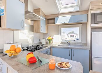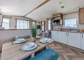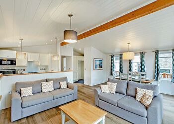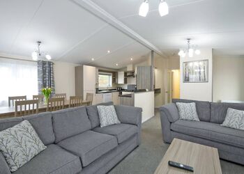 The best of the best. Our largest range of lodges, with top quality fixtures and fittings, a premium finish, and stylish decor. Features a fully equipped kitchen, heating & double glazing, a bathroom with shower, and beds fully made up on arrival. Plus, fresh towels and a complimentary hub pass! Images are representative and may not be the specific accommodation assigned on booking.