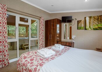 New for 2022, the Robin Log Cabins are set in their own adults-only area of the park. Each cabin has an open plan kitchen, dining and living area. King bed complete with your own breakfast in bed tray. The cabin has built in bluetooth speakers and luxury touches such as a welcome basket, outside egg chair big enough for two, hot tub and a bistro set for al fresco dining. Images are representative and may not be the specific accommodation assigned on booking.