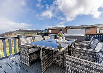 A stunning lodge with fantastic coastal views, master bedroom with king-size bed and en suite, two additional king-size bedrooms that can be split to twin beds, both with en suite showers. Open plan lounge/dining with kitchen area. Outdoor decked area with garden furniture and outdoor hot tub, perfect retreat with open views. King or two twins for second and/or third bedroom - please call to request.
