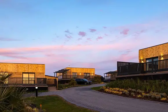 This booking is for accommodation 6 Person Scandinavian Kinder Hot Tub Lodge (Pet), at Gwel an Mor.