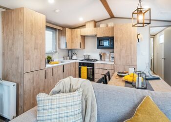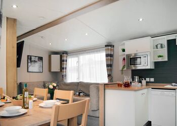 Built to the very latest standards and are far from being classic accommodation, rather they are contemporary, charming, and cosy. With an en suite toilet to the master bedroom as well as a main shower room, comfort and convenience come as standard. Double glazed and centrally heated throughout, both the lounge area and bedrooms are fully carpeted so no chilly toes on those early and late season breaks! And, the extras you get as standard from a Waterside Group holiday do not end there as in the kitchen you will find both an integrated microwave and a dishwasher as well.Images are representative and may not be the specific accommodation assigned on booking.