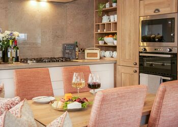 An exceptional holiday home with private hot tub and spacious open-plan living spaces and luxurious fixtures and fittings throughout, doors from the lounge lead onto a large veranda with seating. One double room and a twin room, fully equipped kitchen with coffee machine, full size fridge/freezer and dishwasher, two toilets and two showers, TV in the lounge with DVD player and TVs in all the bedrooms. Beds are made ready for your arrival. Your holiday home check in is 2pm.Images are representative and may not be the specific accommodation assigned on booking.