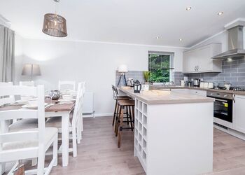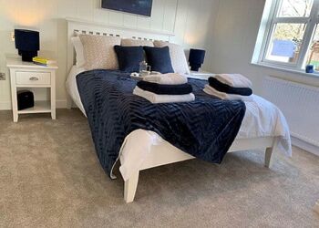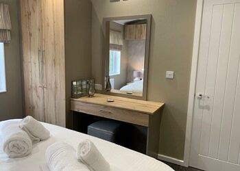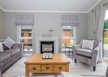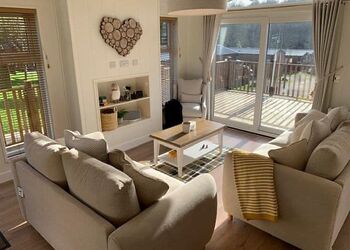 A beautifully decorated, modern home which sleeps six in one double and two twin bedrooms is the newest addition to the park. This home falls into our signature range, providing a stunning lake views and featuring a en suite shower to the master bedroom and a family bathroom.Other features include an open-plan living space and a kitchen with ample seating and kitchen facilities including a hob, microwave, fridge, dishwasher, and washing machine.Bath towels, and linen included with beds made up for arrival, heating and luxurious outdoor hot tub. No Pets.