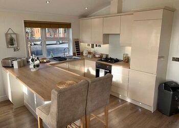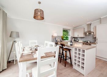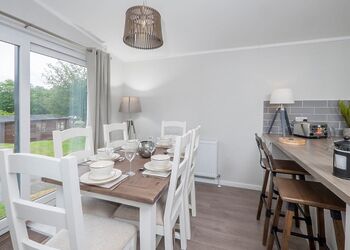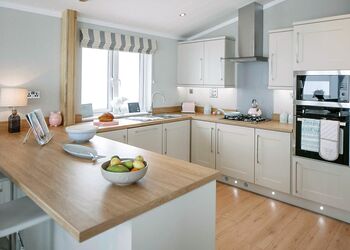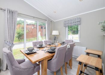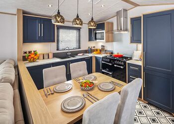 An up to date home, this is one of our newest on park and sleeps up to eight in two double and two twin bedroom. It falls into our Luxury range featuring an open-plan living space and kitchen with ample seating and kitchen facilities including hob, fridge and microwave. Other features include bath and/or shower, linen and bath towels included with beds made up for your arrival, decking with patio furniture, double glazing and heating.Images are representative and may not be the specific accommodation assigned on booking.