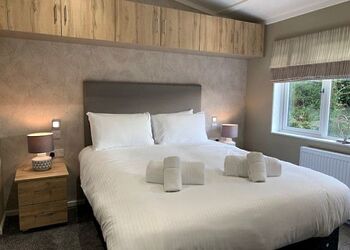 A beautifully decorated, modern home which sleeps up to six in one double and two twin bedrooms is the newest addition to the park. This home falls into our Signature range, providing a stunning lake view and featuring an en suite shower to the master bedroom and a family bathroom. Other features include an open-plan living space and kitchen with ample seating and kitchen facilities including hob, fridge, dishwasher, washing machine and microwave. Bath towels and linen included with beds made up for your arrival, heating and a luxurious outdoor hot tub. No pets.