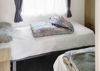 12ft-wide caravan with one double and two twin. Double glazed and centrally heated.Images are representative and may not be the specific accommodation assigned on booking.