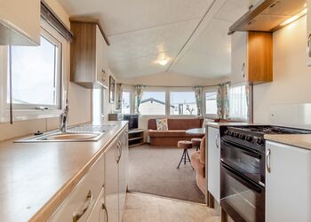 12ft-wide caravan with one double and two twin. Double glazed and centrally heated. Sea views.Images are representative and may not be the specific accommodation assigned on booking.