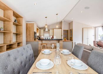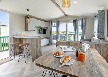 The best of the best. Our largest range of lodges, with top quality fixtures and fittings, a premium finish, and stylish decor. Features a fully equipped kitchen, heating & double glazing, a bathroom with shower, and beds fully made up on arrival. Plus, fresh towels and a complimentary hub pass! Images are representative and may not be the specific accommodation assigned on booking.