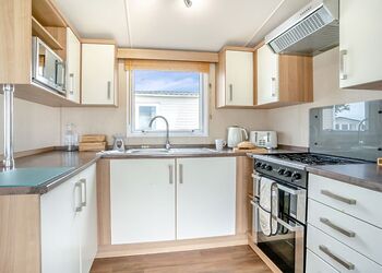 Our best in range caravan. Features a spacious interior with a premium finish for a memorable stay. Features a fully equipped kitchen, heating & double glazing, a bathroom with shower, and beds fully made up on arrival. Plus, a complimentary hub pass!Images are representative and may not be the specific accommodation assigned on booking.