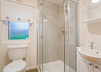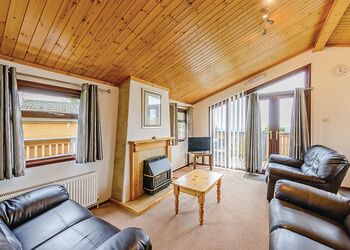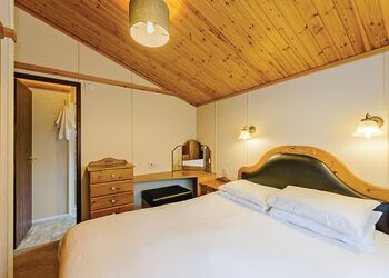 Spacious lodge with one double with en suite shower and two twin. Bath with overhead shower. Flatscreen TV/DVD. Ideal for groups, couples or larger families.Images are representative and may not be the specific accommodation assigned on booking.