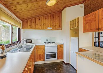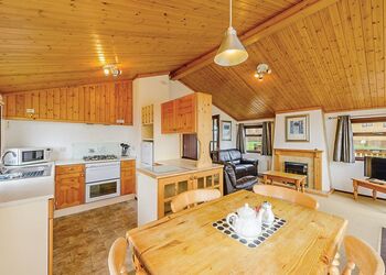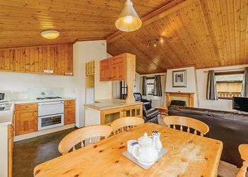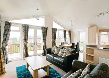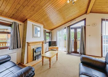 Stylish and contemporary lodge. One double with en suite shower and one twin. Shower. Open plan lounge/kitchen/dining area with flatscreen TV/DVD. Dishwasher and fridge/freezer. Doors to decking with outdoor hot tub.
