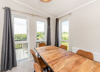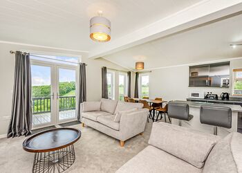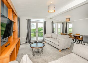 The Richmond Plus, our newest and most luxurious lodge, with private hot tub. This stunning two-bedroom lodge, with one double bedroom with en suite and one twin room, is truly breathtaking and the stylish and sumptuous interior creates the perfect space for a special holiday. The open-plan living area offers a spacious lounge, with bi-fold doors onto your private decking and a cosy snug, somewhere to sit and enjoy the beautiful views or perhaps some stargazing at night. A high specification kitchen with kitchen island and American style fridge/freezer blends seamlessly into the living area, perfect for social cooking or entertaining. Slip outside and into your private hot tub, the perfect place for some ‘you’ time. The Richmond Plus also benefits from Smart TV’s and complimentary Wi-Fi. No pets.Images are representative and may not be the specific accommodation assigned on booking.