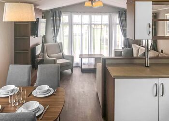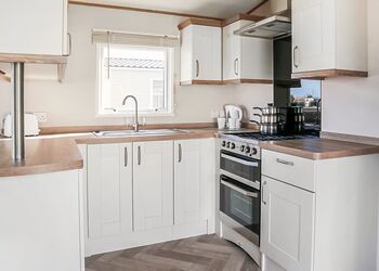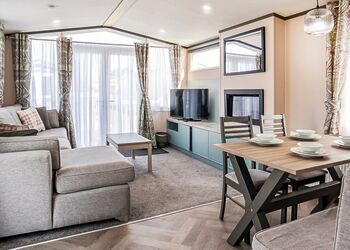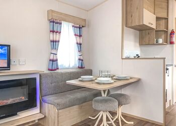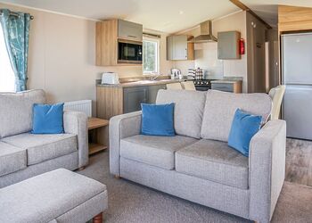 Flatscreen TV, shower, additional sleeping for two in the lounge area, kitchen including gas cooker, microwave and domestic fridge/freezer, and gas and electricity included. Bed linen included. Heating: Electric fire to the lounge, domestic central heating and double glazing. Access: 3 steps with handrail leading onto wrap-around decking.Images are representative and may not be the specific accommodation assigned on booking.