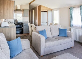 Spacious and comfortable 12ft-wide caravan with one double with en suite W.C. and two twin. Fridge/freezer. Double glazed and centrally heated. No pets.Images are representative and may not be the specific accommodation assigned on booking.