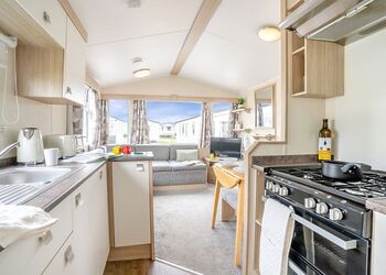 Our best in range caravan. Features a spacious interior with a premium finish for a memorable stay. Features a fully equipped kitchen, heating & double glazing, a bathroom with shower, and beds fully made up on arrival.