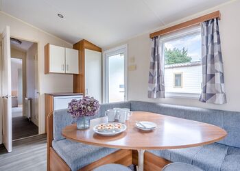 If you would like something bigger, this caravan is a spacious option with even more room in the living area. Features a fully equipped kitchen, heating & double glazing, a bathroom with shower, and beds fully made up on arrival. Plus, a complimentary hub pass!Images are representative and may not be the specific accommodation assigned on booking.