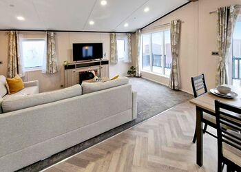 The Luxury 3 Bed is a quality sleeps 8 holiday Home with contemporary features. With one double bedroom with en suite W.C., two twin bedrooms and additional sleeping in the living area on the sofa bed. The living area is spacious with a comfy corner sofa, flatscreen tv and a lovely fireplace making it perfect for those cosy nights in. The kitchen and dining area is Open-planned and has all the utilities required to make breakfast, lunch and dinner and is also perfectly designed so that all friends and family can still enjoy each others company whilst cooking as the dining table is within the kitchen area. Outside you have your own decking area with extra space furniture, ideal for enjoying a morning cuppa or indulging in a family meal under the stars at night. No Pets.Images are representative and may not be the specific accommodation assigned on booking.