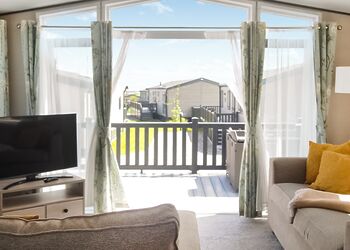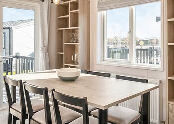 Premium 2 Bed is a wonderful sleeps 4 holiday Home with contemporary decor and beautiful design features throughout. With one double bedroom with en suite, one twin room. The living area is spacious with two quality sofas and a flatscreen TV making it perfect for those cosy nights in. The kitchen and dining area is Open-planned and has all the utilities required to make breakfast, lunch and dinner and is also perfectly set up so that all friends and family can still enjoy each other’s company whilst cooking as the dining table is within the kitchen area. Through the French doors and outside you have your own decking area with quality furniture making it a perfect spot to enjoy breakfast out in the sun or a quenching your thirst with glass of wine whilst watching the stars at night. No Pets.Images are representative and may not be the specific accommodation assigned on booking.