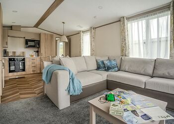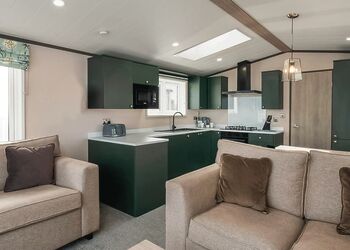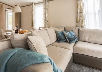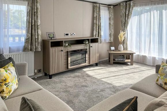 The Luxury 2 Bed is a quality sleeps 6 holiday Home with contemporary features. With one double bedroom with en suite W.C., one twin room and additional sleeping in the living area on the sofa bed. The living area is spacious with a comfy corner sofa, flatscreen tv and a lovely fireplace making it perfect for those cosy nights in. The kitchen and dining area is open-planned and has all the utilities required to make breakfast, lunch and dinner and is also perfectly designed so that all friends and family can still enjoy each others company whilst cooking as the dining table is within the kitchen area. Outside you have your own decking area with extra space furniture, ideal for enjoying a morning cuppa or indulging in a family meal under the stars at night. No Pets.Images are representative and may not be the specific accommodation assigned on booking.