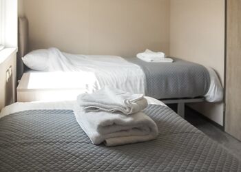 Premium 3 Bed is a wonderful sleeps 6 holiday Home with contemporary decor and beautiful design features throughout. With one double bedroom with en suite, two twin bedroom. The living area is spacious with two quality sofas and a flatscreen TV making it perfect for those cosy nights in. The kitchen and dining area is Open-planned and has all the utilities required to make breakfast, lunch and dinner and is also perfectly set up so that all friends and family can still enjoy each other’s company whilst cooking as the dining table is within the kitchen area. Through the French doors and outside you have your own decking area with quality furniture making it a perfect spot to enjoy breakfast out in the sun or a quenching your thirst with glass of wine whilst watching the stars at night. No Pets.Images are representative and may not be the specific accommodation assigned on booking.