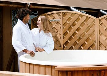 The Woody Safari Tent (Pet) is an amazing alternative to your traditional holiday accommodation which sleeps 4 adults and 2 children. With one double bedroom, one twin bedroom and one cabin bed that sleeps up to 2 children, under the cabin bed area there is a kids play area. There is a perfectly designed spacious living area with flatscreen TV, seating for all the family and a wonderful wood burner complete with small oven! The kitchen area has all the amenities and utilities you’ll require to put together your meals throughout the day along with a dining table and chairs. The bathroom has everything you’d expect with toilet, basin and walk in shower. Outside is the decking area with furniture plus your very own private wood fired hot tub, adults don’t forget your robes and slippers which come with this accommodation. Bring along your furry friend as this accommodation is pet friendly.Images are representative and may not be the specific accommodation assigned on booking.