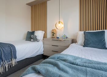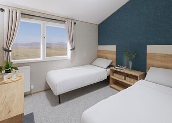 Double the size of a traditional holiday home, our spacious 3-bedroom Exclusive Lodges offer unparalleled comfort and modern conveniences to make your holiday truly relaxing. Sleeping up to 6 guests, featuring a master bedroom with an en-suite bathroom and 2 twin bedrooms with 2 single beds. Bedrooms feature additional storage with wardrobes offering ample space for everyone. Enjoy the private and very spacious outdoor decking accessible through elegant French doors, complete with your own infrared sauna for the ultimate in relaxation. Practical amenities such as a hairdryer, ironing board, a microwave, washing machine and dishwasher are all included. Our park also features EV charging points for electric vehicles.Lodge features vary depending on the manufacturer and model and cannot be guaranteed. All our units vary subtly; the floor plan is an example layout only. Travel cots will only fit in the living area of this lodge.Please note, this holiday home does not accept pets.Images are representative and may not be the specific accommodation assigned on booking.
