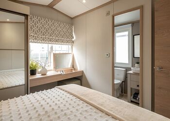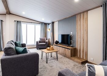 Double the size of a traditional holiday home, our spacious 2-bedroom Exclusive Lodges offer unparalleled comfort and modern conveniences to make your holiday truly relaxing. Sleeping up to 4 guests, featuring a master bedroom with an en-suite bathroom and a twin bedroom with two single beds. Bedrooms feature additional storage with wardrobes offering ample space for everyone. Enjoy the private and very spacious outdoor decking accessible through elegant French doors, complete with your own infrared sauna for the ultimate in relaxation. Practical amenities such as a hairdryer, ironing board, a microwave, washing machine and dishwasher are all included. Our park also features EV charging points for electric vehicles.Lodge features vary depending on the manufacturer and model and cannot be guaranteed. All our units vary subtly; the floor plan is an example layout only. Travel cots will only fit in the living area of this lodge.Please note, this lodge does not accept pets.Images are representative and may not be the specific accommodation assigned on booking.
