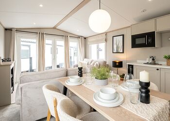 Our one-of-a-kind Autograph Luxury Lodge is a Prestige Glass House, which redefines holiday living with its refined design and exceptional comfort. Enjoy a spacious floorplan, larger than any of our other lodges, and step onto your expansive private deck to unwind in your secluded hot tub. It’s a tranquil escape designed for total relaxation from the moment you arrive.Inside, you’re welcomed by a high-quality finish and a spacious open-plan layout that creates an inviting atmosphere for both unwinding and spending time together. Inspired by the elegance and craftsmanship of Scandinavian design, the lodge features clean lines, natural textures, and meticulous attention to detail throughout.The seamless flow between the fully equipped kitchen and stylish living area adds to the sense of space and ease, making it as practical as it is beautiful. Every element has been carefully considered to offer a truly memorable stay, where comfort and design work in perfect harmony.Sleeping up to 4 guests, featuring a master bedroom with an en-suite bathroom and a twin room. Bedrooms feature additional storage with wardrobes offering ample space for everyone. Practical amenities such as a hairdryer, ironing board, a microwave, washing machine and dishwasher are all included. Our park also features EV charging points for electric vehicles. This lodge is not pet friendly.Lodge features vary depending on the manufacturer and model and cannot be guaranteed. All our units vary subtly; the floor plan is an example layout only. Travel cots will only fit in the living area of this lodge.Images are representative and may not be the specific accommodation assigned on booking.