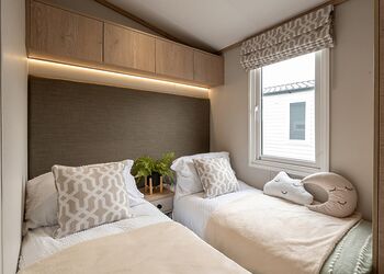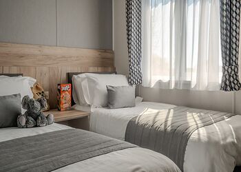 Double the size of a traditional holiday home, our spacious 2 bedroom Exclusive Lodges offer unparalleled comfort and modern conveniences to make your holiday truly relaxing. Sleeping up to 4 guests, featuring a master bedroom with an en-suite bathroom and a twin bedroom with two single beds. Bedrooms feature additional storage with wardrobes offering ample space for everyone. Enjoy the private and very spacious outdoor decking accessible through elegant French doors. Practical amenities such as a hairdryer, ironing board, a microwave, washing machine and dishwasher are all included. Our park also features EV charging points for electric vehicles.You’re looking at one of our pet friendly accommodations, where you can add up to two dogs at checkout for just £50 per dog. Your pups will receive a delightful welcome pack, including some tasty treats to ensure they feel right at home.Lodge features vary depending on the manufacturer and model and cannot be guaranteed.Images are representative and may not be the specific accommodation assigned on booking.