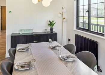 This 4-bedroom Exclusive Lodge with a private hot tub offers the perfect blend of space, comfort, and modern amenities, making it an ideal retreat for families or groups. With up to 800 square feet of living space, these lodges are thoughtfully designed to enhance your holiday experience. The private hot tub provides the ultimate indulgence, allowing you to unwind and relax under the stars. The fully-fitted kitchen is equipped with everything you need, including a cooker, fridge-freezer, microwave, kettle, toaster, dishwasher, washing machine, and even an iron and ironing board, simplifying self-catering during your stay. The lodge features spacious and comfortable bedrooms, including a full-size twin room with extra space and additional bedrooms for the whole family. A modern family bathroom and private en-suite add convenience and comfort. Outside, your private decking area invites you to enjoy outdoor dining or simply soak up the peaceful surroundings, while private parking ensures a hassle-free arrival. Check-in is available from 3 pm, allowing you to settle in and start enjoying your getaway right away. Whether you’re lounging in the hot tub, savoring the tranquil outdoor space, or making use of the well-equipped kitchen, this lodge promises an unforgettable escape.