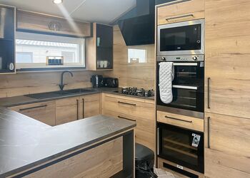 Outstanding, spacious lodge with one double and two twin. Shower. Open plan lounge/diner with kitchen area. Verandah with garden furniture and outdoor hot tub.