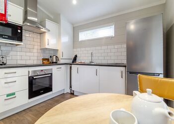 Stylish and spacious lodge perfect for friends and family wanting to explore the Norfolk countryside and coast. Two comfortable king-size bedrooms both with walk-in wardrobe and stylish en suite shower room and three spacious twins. The modern family bathroom includes bath with separate shower. The chic open-plan living space with has a cosy, restful seating area, elegant dining area and stylish fully equipped kitchen including American style fridge/freezer. Open the French doors leading to your patio and decking area and unwind in your own bubbling hot tub.Images are representative and may not be the specific accommodation assigned on booking.