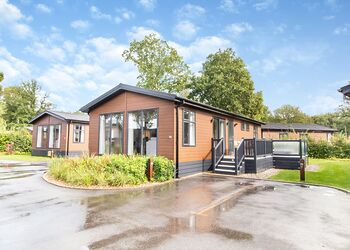 Contemporary spacious lodge ideal for families or friends wanting to enjoy the on-site activities. Featuring two king-size bedrooms, both with stylish en suite shower rooms, one including a walk-in wardrobe and one comfortable twin bedroom. There is a contemporary family bathroom with bath with overhead shower. The chic open-plan living area includes a stylish kitchen with breakfast bar, along with an elegant dining area and relaxing seating area. Open the French doors and step out onto your decking area and relax in your bubbling hot tub and take in the countryside views.Images are representative and may not be the specific accommodation assigned on booking.