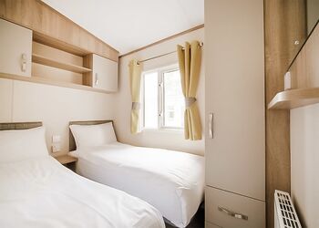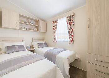 12ft-wide caravan with one double and one twin. DVD and soundbar. Double glazed and centrally heated. No pets.Images are representative and may not be the specific accommodation assigned on booking.