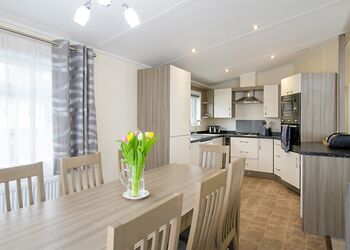 Brand new and a glorious 336 square feet. This home is stylish and oh so comfortable! The main living space features an innovative seating area with pop up head rests, stow away foot stools and a pull out section making an extra bed (or even better, extra space for lounging on movie nights!) It is also centrally heated and double glazed for extra comfort, plus there is fire for warming toes. The lovely bright kitchen is a pleasure to cook and prepare meals in. Finished with touches that include USB charging ports, a heated towel rail, flatscreen TV and hairdryer - The Colby is a wonderful choice for your holiday base.Images are representative and may not be the specific accommodation assigned on booking.