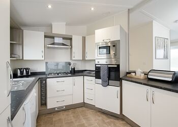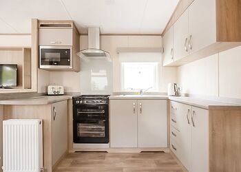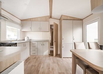 Brand new 12ft-wide caravan with one double and one twin. Additional sleeping for two in lounge area. Shower. Double glazed and centrally heated. Fridge/freezer. Suitable for parties including partially disabled visitors - ramped access, wider doors, lower kitchen units and wet room with grab rails. No pets.Images are representative and may not be the specific accommodation assigned on booking.