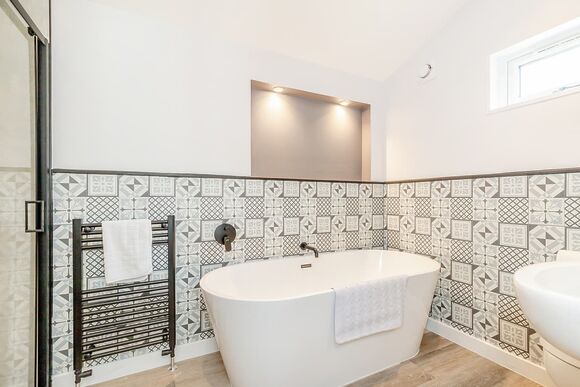 Our single-bedroom lodge is perfect for a self-catering retreat, offering a fully-equipped kitchen, cosy sofa, widescreen TV, and, of course, a hot tub on your private decking. You can enjoy the warmth of the summer sun or indulge in long conversations under the stars in your secluded hot tub before relishing your dinner on the decking and immersing yourself in the picturesque countryside surroundings. Featuring a spacious double bed and a freestanding bathtub and/or shower, this one-bedroom lodge is the ultimate romantic escape.Images are representative and may not be the specific accommodation assigned on booking.