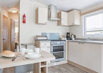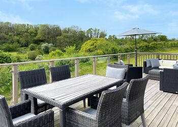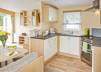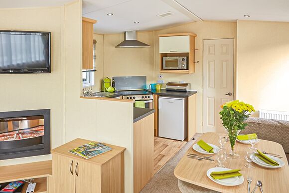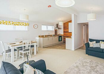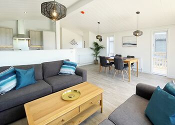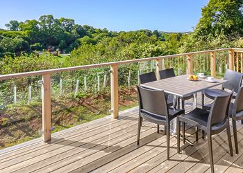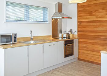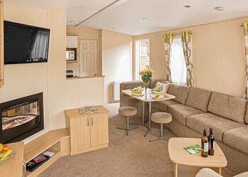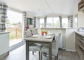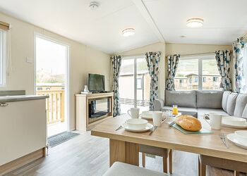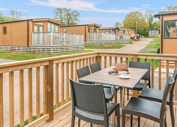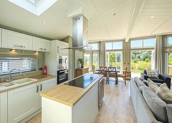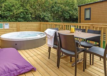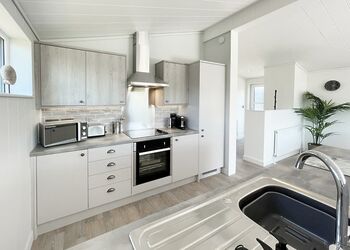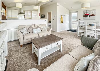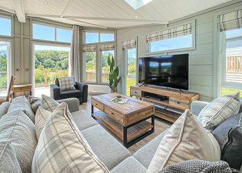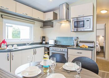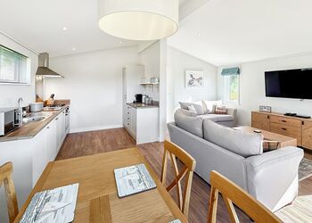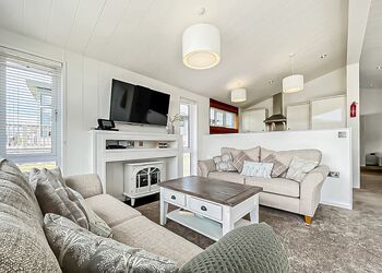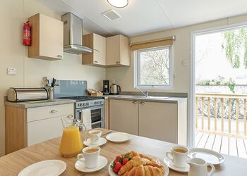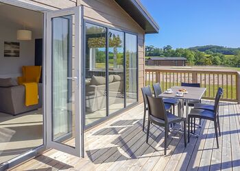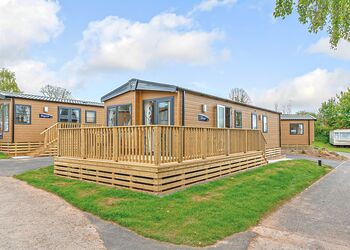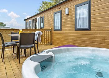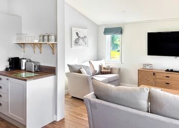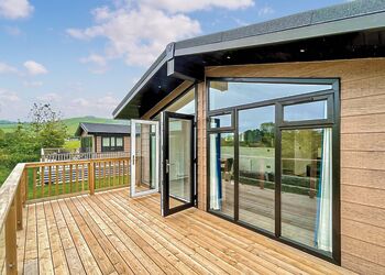 Meadow View Lodge offers a bright and spacious retreat, perfect for countryside getaways. This dog-friendly lodge comfortably accommodates up to four guests - and with a south-facing sundeck and a private hot tub, it’s an ideal spot to unwind.The open-plan living area features comfortable sofas, a TV, DVD player, DAB radio, and a dining table, creating a welcoming space to relax and dine. The fully equipped kitchen includes an oven, fridge/freezer, washing machine, microwave, Nespresso coffee machine, kettle, and toaster, providing everything needed for a self-catered stay. The master bedroom offers a double bed, TV, walk-in wardrobe, dressing table, and an en-suite shower room. The second bedroom includes twin beds, a large wardrobe, and a TV, with a family bathroom conveniently located just across the hall.This lodge has adjacent parking and a ramp providing step-free access to the front door. (40x20ft).