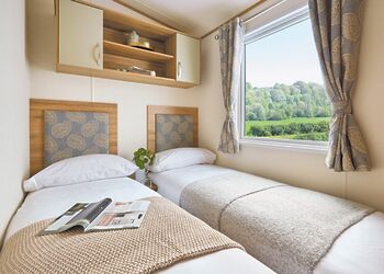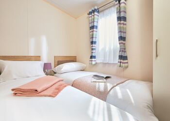 Our two bedroom Ivy Caravans offer all the standard features of a Sage Caravan, with an earlier check in time of 3pm.You’ll find modern interiors and high specification fixtures and fittings throughout. The open plan living area offers fixed seating, a TV and a dining area where you can enjoy family meals. The kitchen is fully equipped with cooker, small fridge, microwave, toaster and kettle, plus crockery, pots and pans.The master bedroom is spacious with a double bed, storage and 14” TV. The twin bedroom comes complete with 2 single beds. There’s a family shower room with a washbasin and WC. Ivy Caravans come complete with an outdoor picnic bench.Images are representative and may not be the specific accommodation assigned on booking.