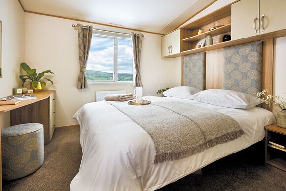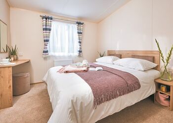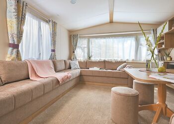 Spacious and versatile, this three-bedroom caravan sleeps six and features open-plan living, a well-equipped kitchen, and a modern bathroom.Images are representative and may not be the specific accommodation assigned on booking.